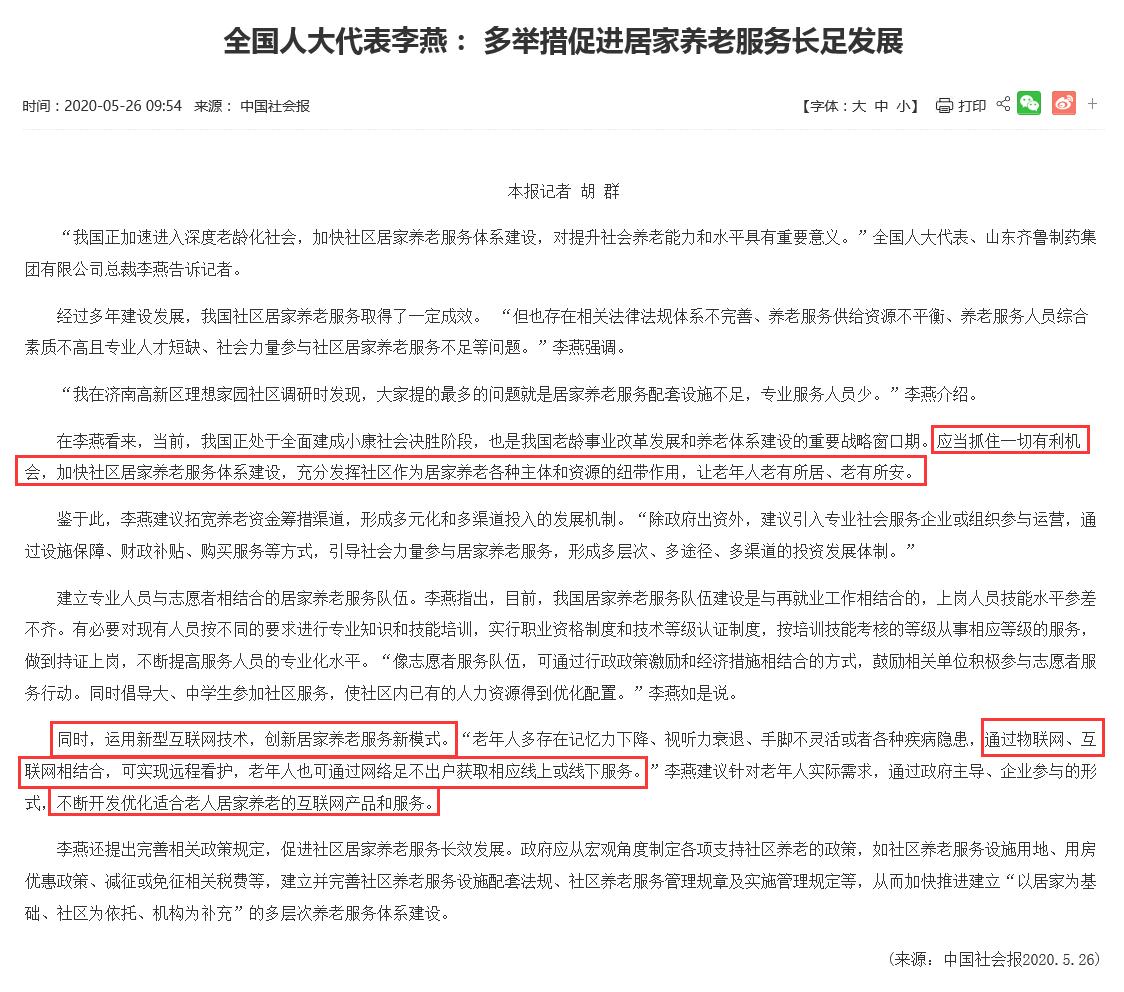 全國人大代表李燕:多舉措促進居家養(yǎng)老服務(wù)長足發(fā)展